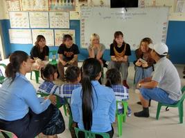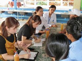 First, we visited a kindergarten run by Japanese staff. In Cambodia, many kindergartens operate by renting elementary school buildings, and kindergartens with playgrounds or a strong focus on play, like those in Japan, are apparently rare. It seems common in Cambodia for children to be fed powdered milk until around age four due to insufficient knowledge about proper childcare. Hearing how the kindergarten staff wanted to convey correct knowledge to parents through their operations, we could feel how deeply they care for Cambodian children. Next, we visited Preah Norodom Public Elementary School. Energetic children surrounded us, chatting away, and despite our foreign appearance, they greeted us warmly with great curiosity. While Cambodian schools use a lecture-style teaching method where children diligently take notes on the teacher's explanations, the children told us with beaming smiles that they find school and their lessons enjoyable.