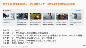 The 12th Bhutan Seminar of the 2025 academic year took place online on Friday, December 19, 2025. The 12th session (72th overall) featured an interview with the Prime Minister. Following the screening, participants asked questions and offered comments about the current status of the "Gelephu Mindfulness City" (GMC) special economic zone initiative, which is led by the King. They also discussed Bhutan’s employment policies and agricultural self-sufficiency rates.