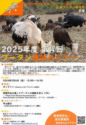 【本セミナーは、日本ブータン研究所の定例勉強会(第214回ブータン勉強会)を兼ねます。】