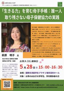 | 講師 | 萩原 明子 氏(独立行政法人国際協力機構(JICA)国際協力専門員(保健)・お茶大OG) |