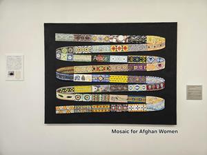 お披露目会では、最初にMosaic for Afghan Womenプロジェクト日本ファシリテーターの濱田麻里さんより、プロジェクトの成り立ちやこれまでの取り組み、各国における活動内容、そして世界各地で展開されている展示の様子についてお話しいただきました。作品を制作することに加え、それを平和で安全な場所に設置する意義、特に大学という教育機関に常設展示できることへの謝意が述べられました。