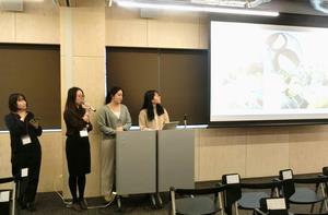 その後、2022年度アフガン勉強会に参加していた学生4名による活動報告が行われました。アフガニスタンの歴史や政治、女性を取り巻く状況について学び、文化や料理を体験しながら、自分たちに何ができるのかを考えてきたことが紹介されました。これらの内容は徽音祭で発表され、現在も今日のような機会に参加したり、周囲の人に自分が知ったことを伝えたりすることの重要性が語られました。