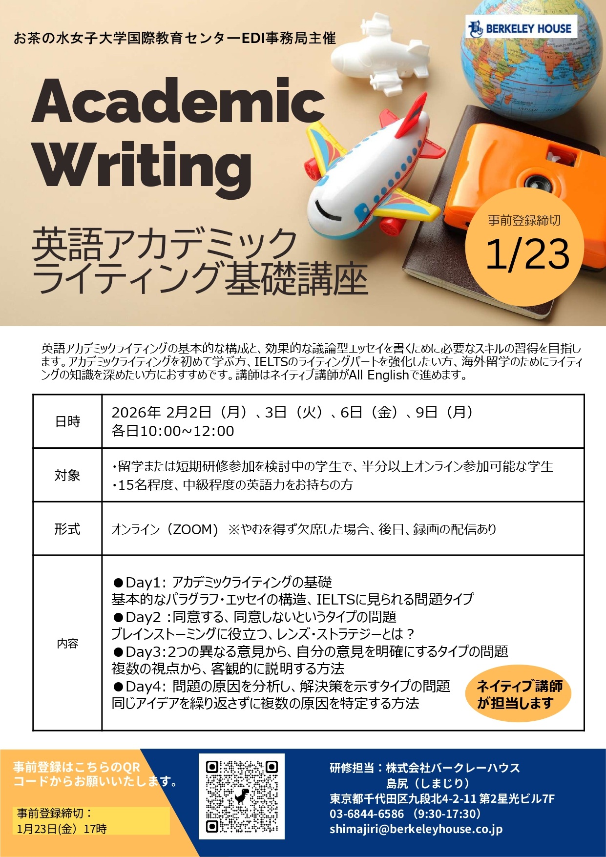留学先で役に立つライティングスキルを身につけませんか。皆様のご参加をお待ちしております。