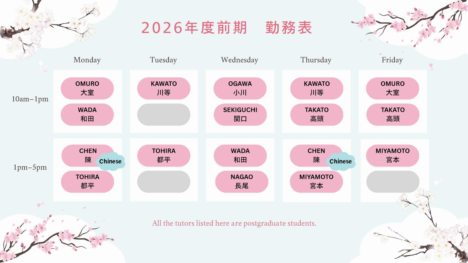 Our Japanese Learning support is managed by graduate and post graduate students as a separate organization in our university.