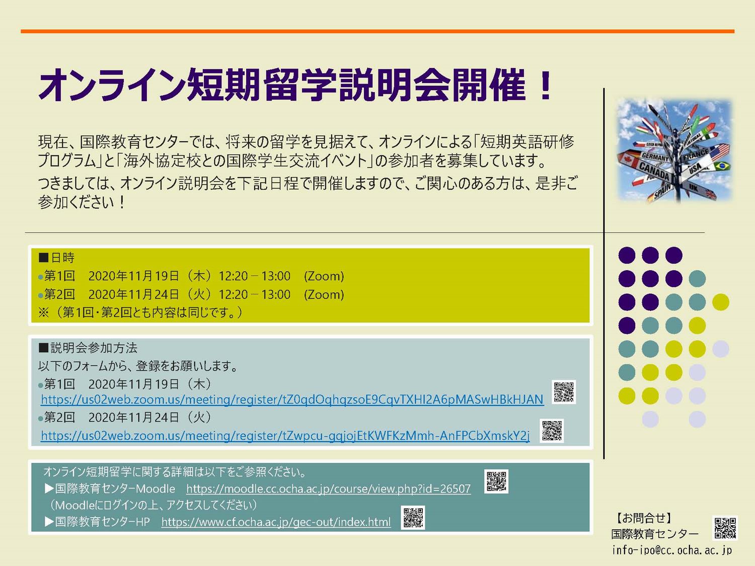 ▶海外協定校主催のオンライン英語短期研修プログラム https://www.cf.ocha.ac.jp/gec-out/news/d009096.html