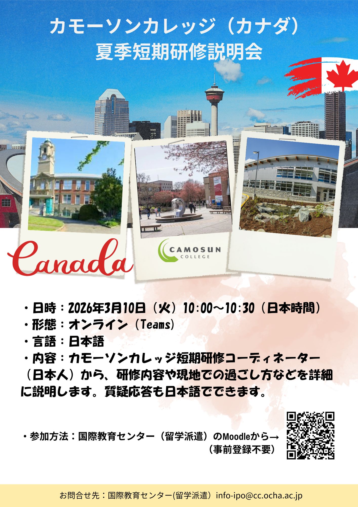 夏季短期研修期間は2026年8月10日~28日です。研修の詳細およびチラシもMoodleに掲載しています。現地担当者から直接話を聞ける貴重な機会ですので、ぜひご参加ください。