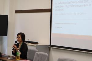 2023年5月9日(水曜日)、IGI学内セミナー「Introducing the Gen Time Project: Temporal Structures of Gender Inequalities in East Asian and Western Countries(Gen Timeプロジェクトの紹介:東アジアと欧米諸国におけるジェンダー不平等の時間的構造)」を対面形式で開催した。オックスフォード大学リナカ・カレッジのMan-Yee Kan教授を講師に招き、31名が参加した。海外で活躍する研究者の講義を対面で聞くことができ、大変貴重な機会となった。