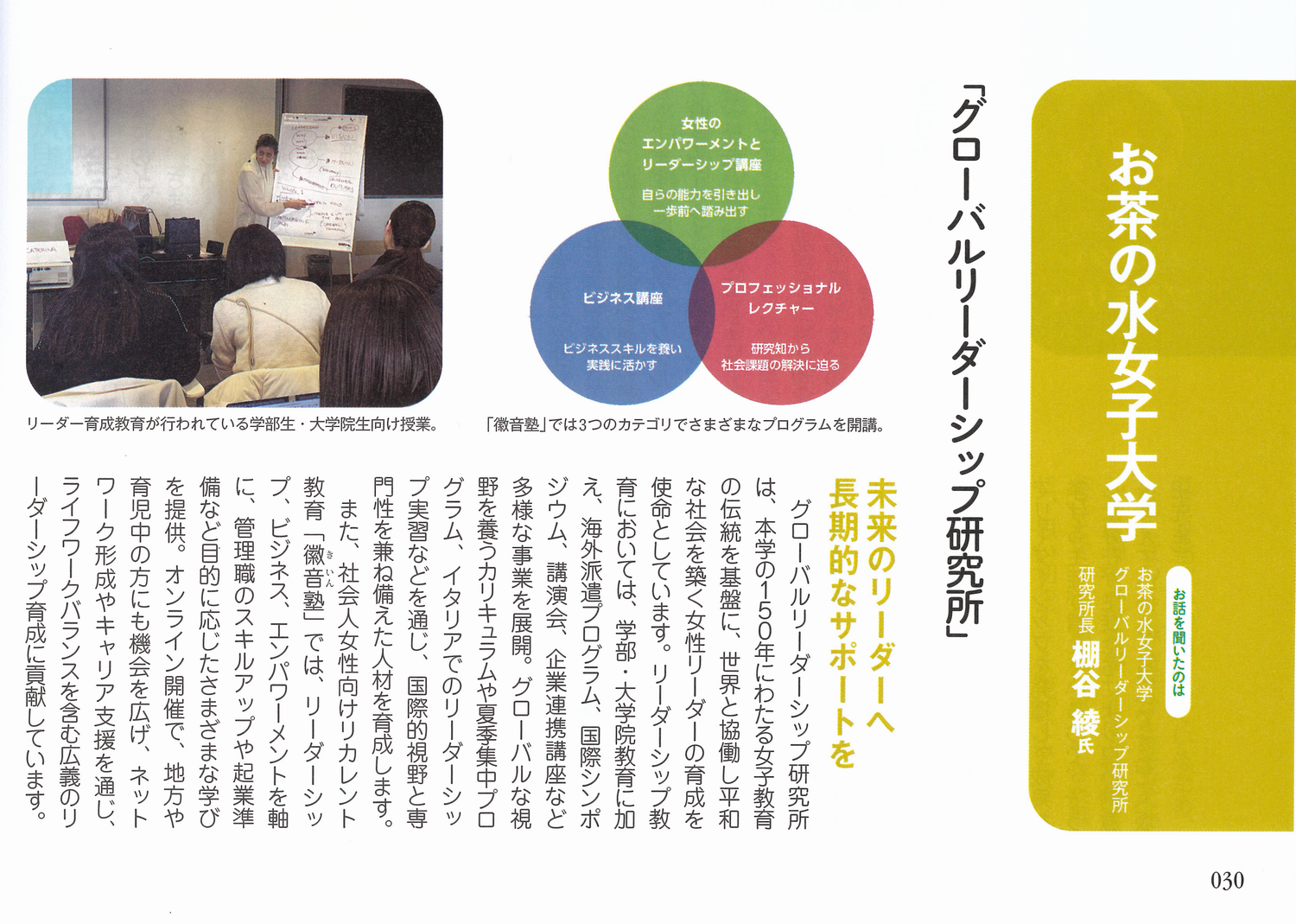 子どもの“夢実現”を応援する教育情報誌Dream Navi2026年4月号30ページ「中高一貫校や大学で進むリーダーシップ教育の今」にお茶の水女子大学グローバルリーダーシップ研究所ならびに徽音塾についての記事が掲載されました。