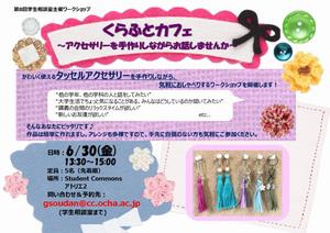 第8回は、かわいく使えるタッセルアクセサリーを手作りしながら、気軽におしゃべりするワークショップを開催します。 “他学年・学科の人と話をしてみたい”、“講義の合間のリラックスタイムが欲しい”、“新しいお友達が欲しい”など、おしゃべりして楽しい時間を過ごし、リフレッシュしたいあなたにぴったりです。