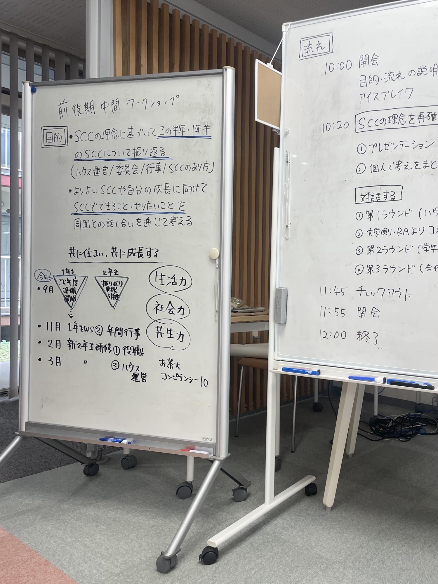 SCCについて改めて理解する場をいただき、前期の寮生活でどのような成長があったかを共有することで、より良い寮生活にするために自分たちにできることは何か様々な視点から考えることが出来ました。後期のSCC生活がより充実したものになるように、今回のワークショップでの気づきを大切にしていこうと思います。